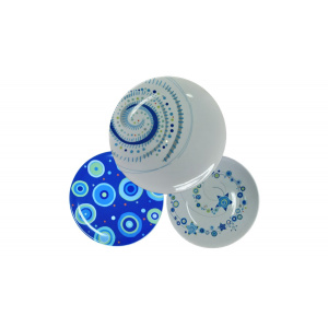 Prato marcador em vidro de cor rosa brilhante e com pequeno relevo. Possui 32cm de diâmentro. Marca Studio Nova.